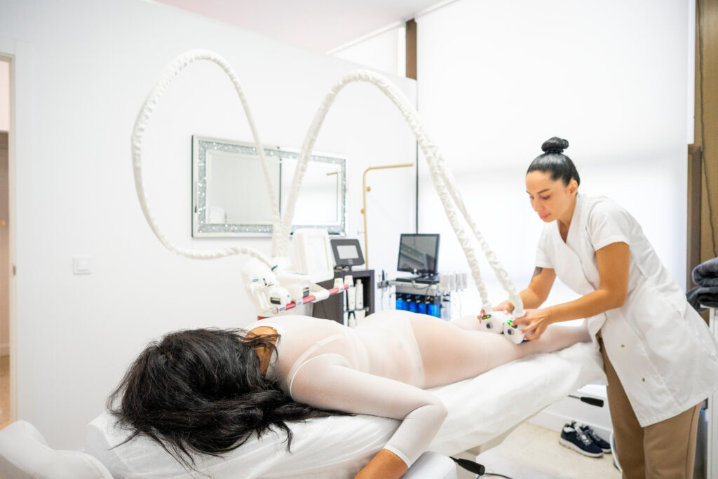 The body treatment with the Icoone device uses the innovative Multi Micro Alveolar Stimulation (MMAS) technology, which is unique in its ability to deeply stimulate connective tissue. This advanced technique addresses various skin imperfections, such as cellulite, localized fat, and sagging skin, with visible results from the first session. It is highly effective for both body treatments, providing rejuvenation and body contouring in a non-invasive way.